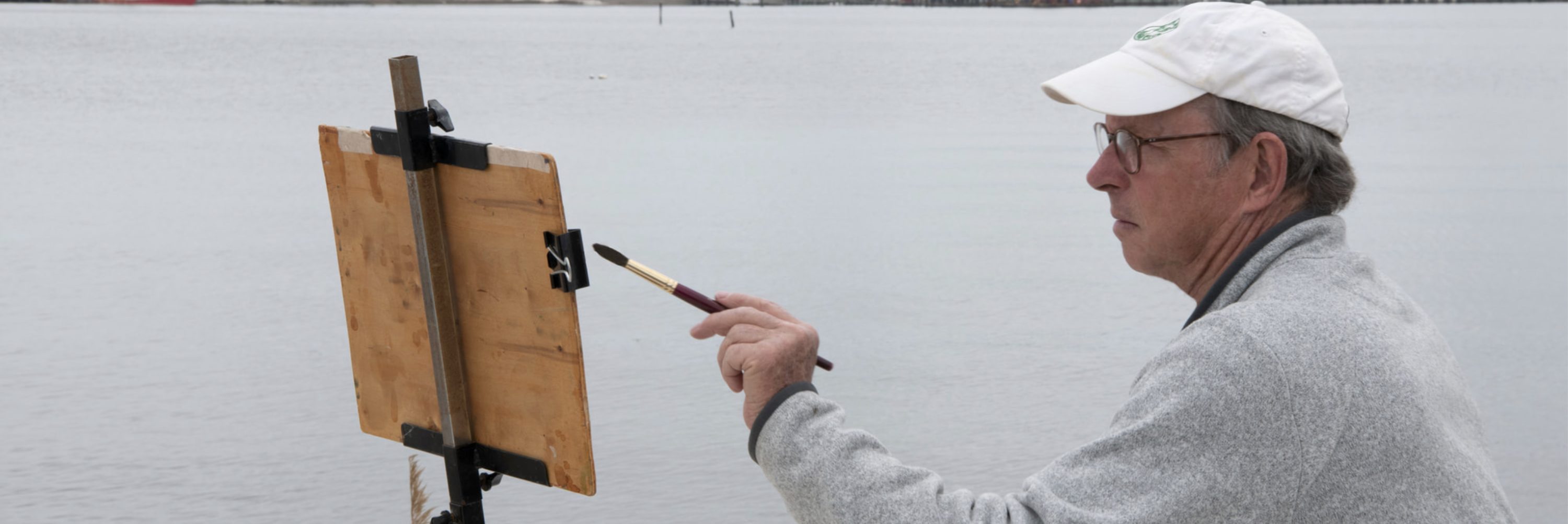 Phil paints a variety of subjects, indoors and out, using oils and watercolors, depending on the subject and location. He is proficient in both mediums and has developed techniques for capturing the unique conditions of the Jersey shore.